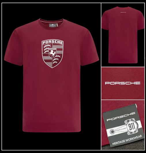 T-shirt homme Porsche Ecusson Couleur Rouge Bordeaux - Matière 100% Coton Logo Porsche 3D sur la poitrine Porsche WAP671PESS 54,95 € TTC / Incl. Taxes