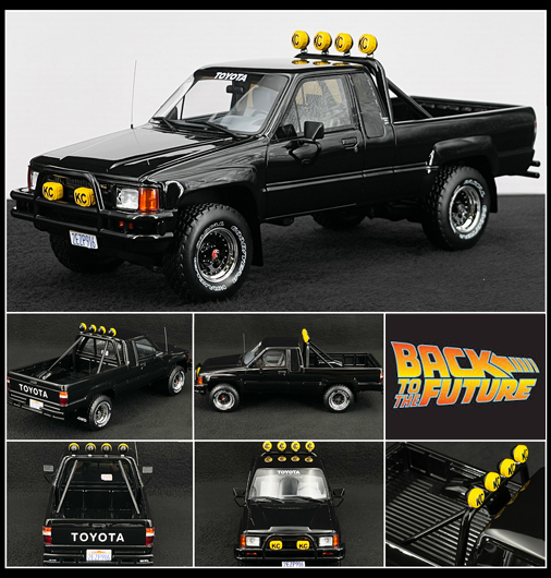 Relive one of the most iconic scenes from Back to the Future with this 1/18 scale replica of the 1985 Toyota Hilux SR5 in its glossy black livery.