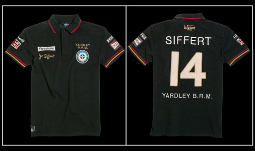 Polo homme Jo Siffert n°14 - Yardley BRM Coupe moderne et esprit Vintage Racing Effet matelassé sur les épaules Signature Jo Siffert sur la poitrine Couleur : noir - Matière : 100% coton