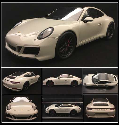 Une seule nouveauté au niveau des miniatures : la 991 Carrera GTS Exclusive 2018 avec toit en verre et sa belle couleur craie (échelle 1/18).