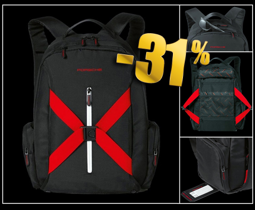 Sac à Dos Porsche Motorsport Collection Compartiment principal rembourré pour ordinateur portable Poche pour lunettes - 2 poches latérales et poche zippée devant Rabat avant avec organisateur et sangle pour casque, veste ou parapluie Porte étiquette d'adresse - Couleur noir - Dimensions 45 x 38 x 22 cm Porsche WAP0502300G