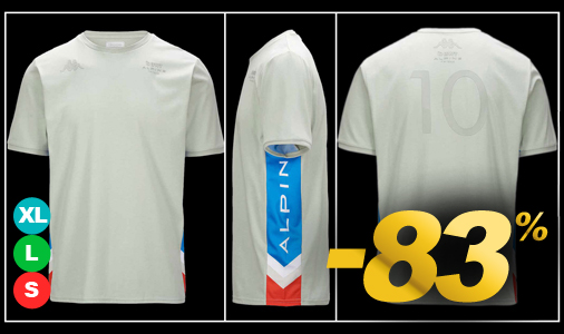 T-shirt homme Pierre Gasly Alpine F1 - Tailles S / L / XL seulement Matière 60% Coton / 40% Polyester - Couleur Gris Kappa 361L3PW-A05