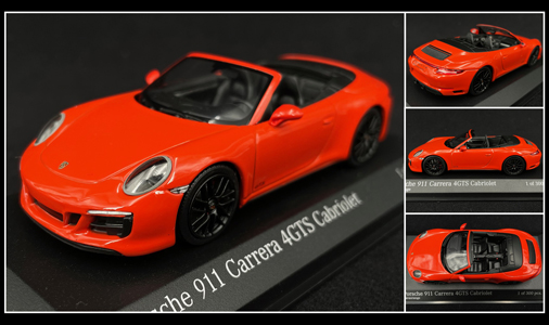 Porsche 991 Carrera 4 GTS Cabriolet 2016 Orange fusion 1/43 - Minichamps 410067331 Edition limitée - 300 exemplaires 49,95 € TTC / Incl. Taxes
