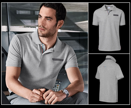 Polo homme Porsche Classic Couleur gris clair chiné - Discrets détails tricolores Matière 47,5 % coton / 47,5 % polyester / 5 % élasthanne Porsche WAP718