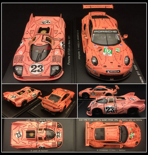 Duo 917 & 991 Pink Pig - 24h du Mans 1971 & 2018 1/43 - Spark S1896 + S7033