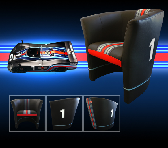 Fauteuil Cabriolet Racing Inside n°1 Couleur : Noir / Bandes bleues et rouges - Structure panneaux de particules Revêtement : 82,5% PVC / 17,5% Polyester Assise et dossier : mousse polyuréthane 30kg/m3 et 25kg/m3 LxHxP : 70 x 80 x 75 cm - Fabriqué à la main dans l'Union Européenne Livraison : sous 1 semaine Pas d'emballage cadeau pour ce produit 249,95 € TTC / Incl. Taxes