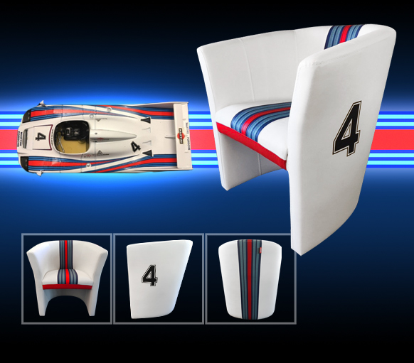 Fauteuil Cabriolet Racing Inside n°4 Couleur : Blanc / Bandes bleues et rouges - Structure panneaux de particules Revêtement : 82,5% PVC / 17,5% Polyester Assise et dossier : mousse polyuréthane 30kg/m3 et 25kg/m3 LxHxP : 70 x 80 x 75 cm - Fabriqué à la main dans l'Union Européenne Livraison : sous 1 semaine Pas d'emballage cadeau pour ce produit 249,95 € TTC / Incl. Taxes