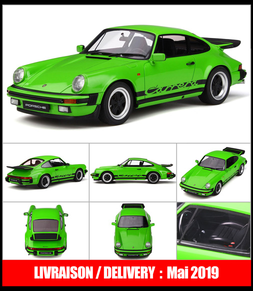 911 Carrera 3.2 1974 Vert citron 1/18 - GT Spirit GT740 Edition limitée - 500 exemplaires Les livraisons auront lieu à partir de fin Mai 2019 109,95 € TTC / Incl. Taxes