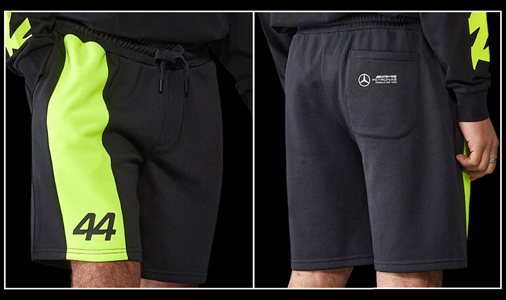 Short mixte Lewis Hamilton Mercedes-AMG F1 Matière 75% Polyester / 25% Coton - Couleur Noir / Jaune 2 poches latérales - 1 poche à l'arrière Mercedes 701227124-001 54,95 € TTC / Incl. Taxes