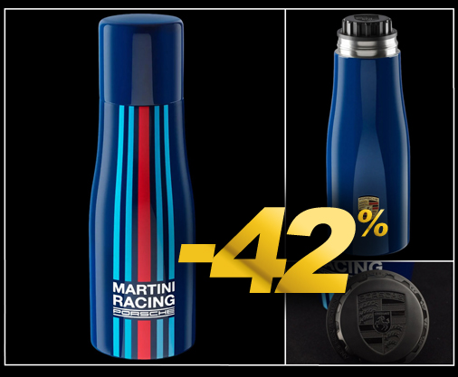 Bouteille Thermos Porsche Martini Racing Le bouchon de fermeture intérieur imite l’écrou central des roues des 911 GT3 Acier inoxydable - Contenance 1 L Porsche WAP0500620L0MR