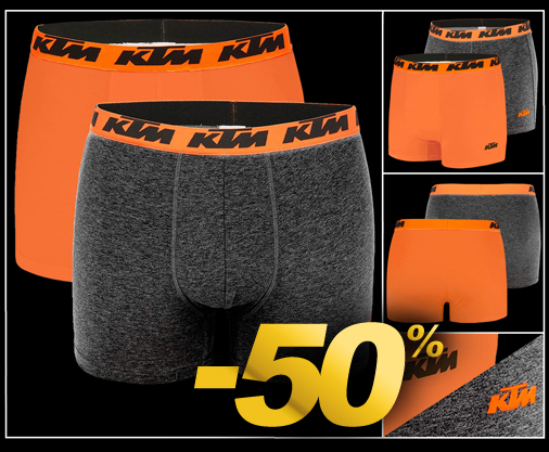 Set de 2 Boxers homme Freegun KTM Coupe confort / tissu stretch extensible - Ceinture élastique orange large Couleur 1x Gris foncé / 1x Orange - Material 95% cotton / 5% elastane Freegun KTM1BCX2ASSDGOR