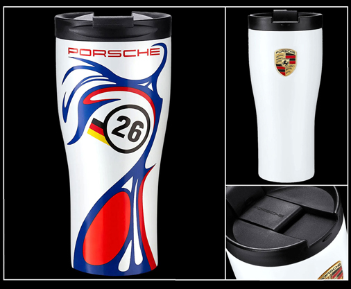 Mug Thermos Porsche 911 GT1 n°26 - Vainqueur 24h Le Mans 1998 Dimensions 9 x 8,5 x 18,7 cm - En acier inoxydable à double paroi Contenance 460 ml - Couleurs Blanc / Rouge / Bleu Porsche WAP0506180RTHB 54,95 € TTC / Incl. Taxes