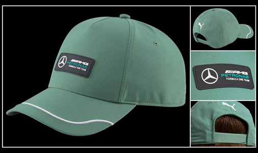 Casquette Mercedes-AMG Petronas F1 Team by Puma Taille réglable par clip - Matière 100% coton - Couleur Vert Profond Mercedes 024061-03 34,95 € TTC / Incl. Taxes