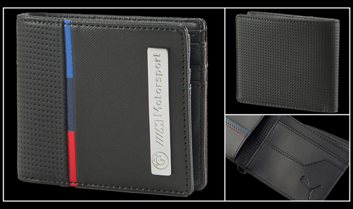 Portefeuille BMW Motorsport by Puma Plusieurs porte-cartes à l’intérieur - Dimensions 11 x 9 cm Matière 100% Polyuréthane - Logo BMW métal Puma 054229-01 34,95 € TTC / Incl. Taxes