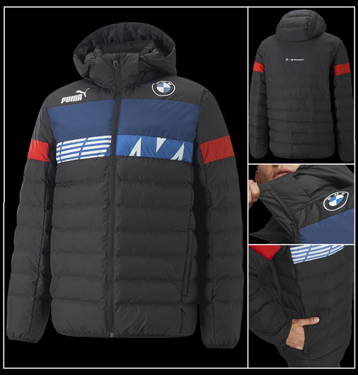 Veste Matelassée homme BMW Motorsport by Puma Femeture par zip jusqu'au col - Poches latérales zippées et capuche Dotée de la technologie warmCELL - Coupe légère et garnissage en duvet Couleur Noir - Matière 100% polyester Puma 535100-01 139,95 € TTC / Incl. Taxes