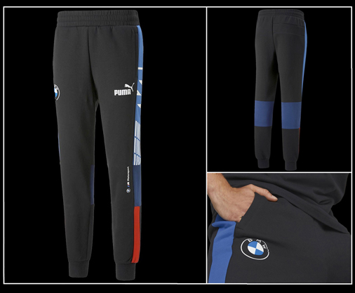 Pantalon homme BMW Motorsport by Puma Couleur Noir / Bleu / Rouge - Matière 77% coton / 23 % polyester 2 poches latérales - Taille élastiquée Puma 535103-01 79,95 € TTC / Incl. Taxes