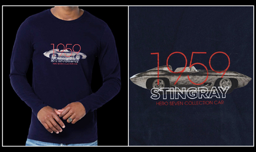 T-shirt Manches Longues homme Corvette Stingray 1959 Couleur Bleu Marine - Matière 100% coton Hero Seven H22101 54,95 € TTC / Incl. Taxes