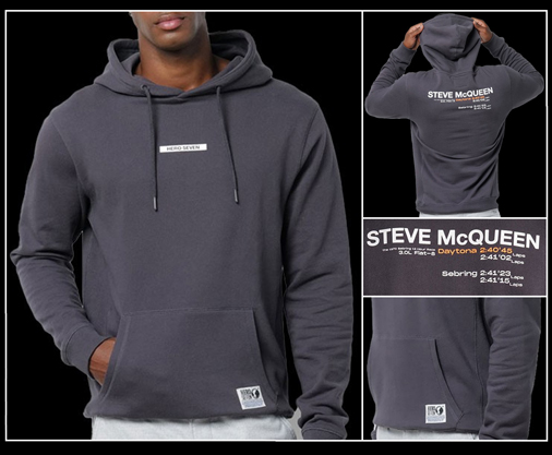Hoodie homme Steve McQueen Chrono Inscription des temps au tour de Steve McQueen à Daytona et à Sebring en 1970 au dos Couleur Gris Foncé - Matière 100% coton Hero Seven H22406 99,95 € TTC / Incl. Taxes