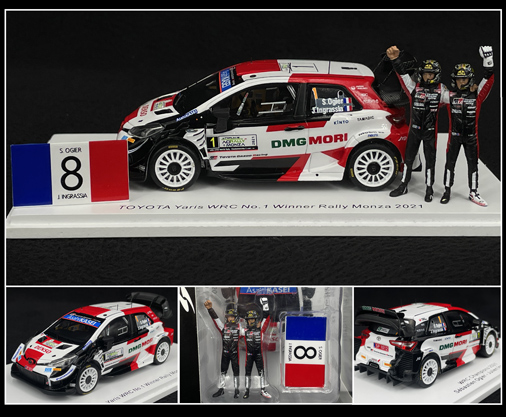 Toyota Yaris WRC n°1 Winner Rallye Monza 2021 with Pilotes models & Flag - 1 : 43