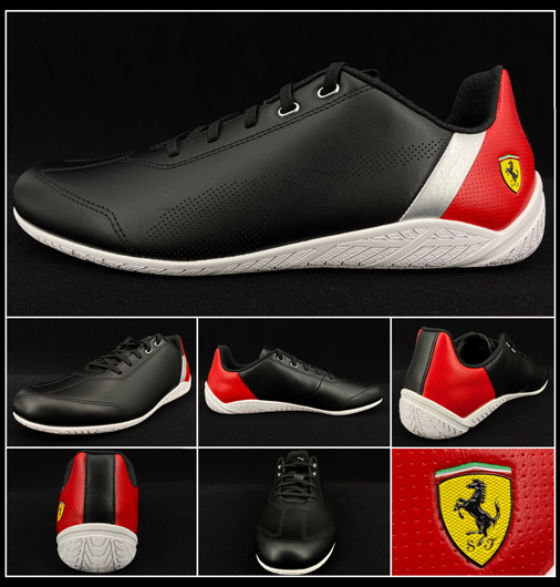 Chaussures homme Ferrari Drift Cat by Puma Semelle sculptée comme un pneu - Couleur Noir / Rouge Matière principale cuir - Renfort au talon Puma 307193-01 79,95 € TTC / Incl. Taxes