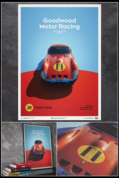 Affiche Ferrari 250 GTO n°11 - Goodwood TT 1963 Affiche originale 175g/m2 - Format 50 x 70 cm Cadre non fourni - Série limitée - 1000 exemplaires 54,95 € TTC / Incl. Taxes