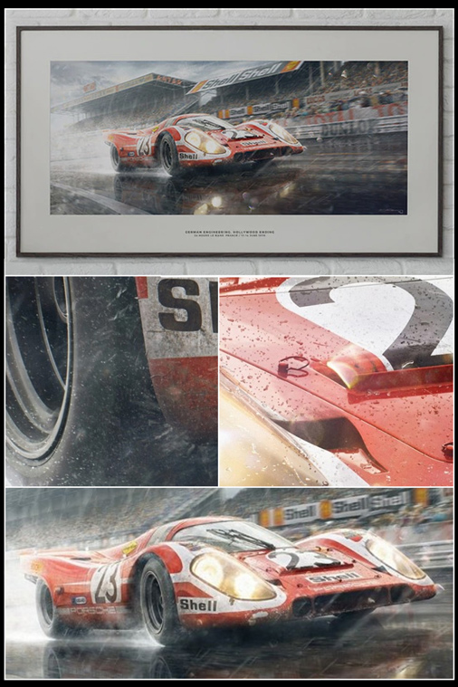 Cadre luxe Porsche 917 K - 24h le Mans 1970 Cadre bois de grande qualité avec finition mate - Format 50 x 24 cm Edition Limitée - 150 exemplaires 379,95 € TTC / Incl. Taxes