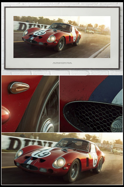 Cadre luxe Ferrari 250 GTO "Not Sterling Without Stirling" Cadre bois de grande qualité avec finition mate - Format 50 x 24 cm Edition Limitée - 150 exemplaires 379,95 € TTC / Incl. Taxes