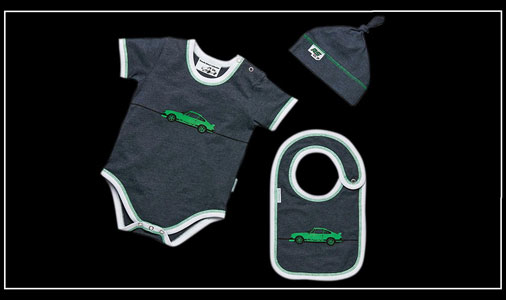Ensemble bébé Porsche Carrera RS 2.7 Composé d'un body, un bavoir et un bonnet Taille 62/68 correspondant à 3–6 mois Matière : 50 % coton, 50 % modal Design Porsche Carrera RS 2.7 Collection Porsche Design WAP950 59,90 € TTC / Incl. Taxes