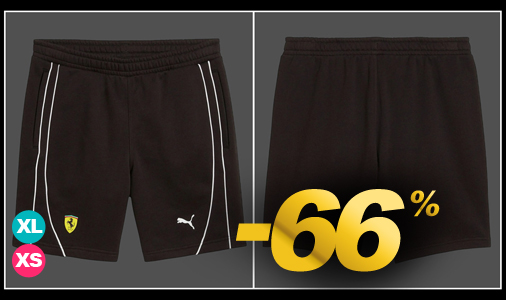 Short mixte Ferrari - Tailles XS / XL seulement Matière 66% coton / 34% Polyester - Taille élastiquée et cordon de serrage 2 poches latérales zippées - Couleur Noir Puma 701228037-001