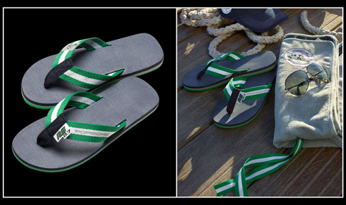 Tongs Porsche 911 Carrera RS 2.7 - Tailles 42 à 46 Seulement Couleur Gris bleu / Vert vipère / Blanc - Logo Porsche sous la semelle Toucher velours éponge - Couleur gris clair / gris foncé Porsche WAP05J