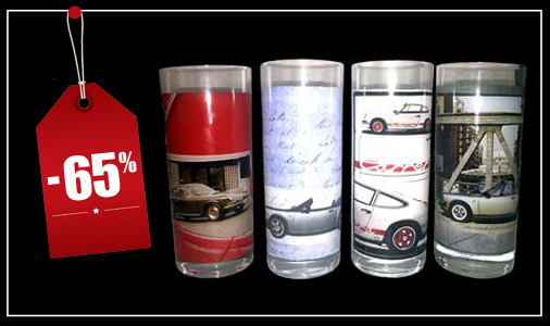 Set de 4 verres Porsche 911 Long Drink Dessins de différentes Porsche 911 Classiques : 911 type 901 de 1964 911 Carrera RS 2.7 de 1973 911 Targa de 1988 911 Carrera 3.6 Speedster de 1993 Hauteur 17 cm - Diamètre 6,8 cm Livrée en boite carton blanche neutre