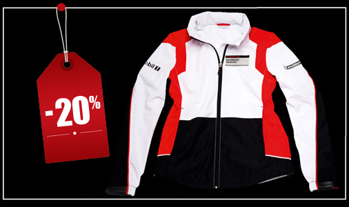 Veste femme Porsche Motorsport Capuche qui se replie dans le col Matière 100% polyester - Couleur Noir / Blanc / Rouge Porsche Design WAP806