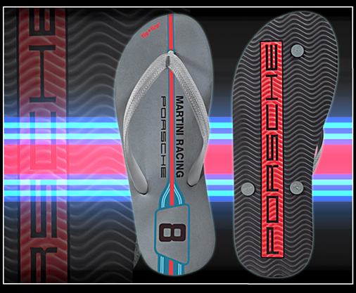 Tongs mixte Porsche Martini Racing n°8 Couleur gris / bandes Martini - Logo Porsche sous la semelle Porsche WAP893 29,95 € TTC / Incl. Taxes