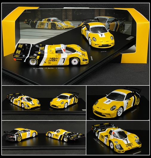 LAST PIECES IN THE WORLD Set Porsche 956 Winner 24h Le Mans 1985 & Porsche 911 GT3 Paolo Barilla 2022 - 1 : 43