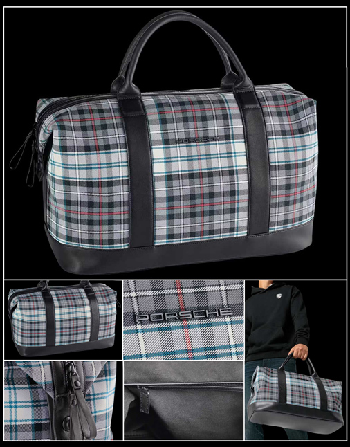 Sac de Voyage Porsche Turbo 50 ans Couleur Tartan Turbonite - Matière Polyester / Cuir de vache - 2 poignées en Cuir Compartiment principal spacieux avec fermeture à double passant Dimensions 25 x 49 x 33 cm - Edition limitée - 911 exemplaires Porsche WAP0353100S50Y 489,95 € TTC / Incl. Taxes