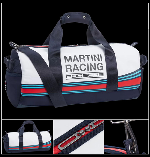 Sac de Sport Porsche Martini Racing Poignées de transport et bandoulière amovible - Compartiment principal avec grande ouverture Matière 80% Nylon / 20% Elasthanne - Poches extérieures aux extrémités Poches intérieures zippées - Couleur Rouge / Blanc / Bleu Porsche WAP0359270P0MR 149,95 € TTC / Incl. Taxes