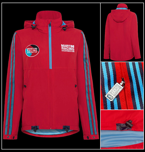 Veste à Capuche femme Porsche Martini Racing Matière 100% Polyester - Fermeture principale zippée - Couleur Rouge / Bleu marine 2 grandes poches latérales zippées - Capuche amovible Porsche WAP555P0MR 259,95 € TTC / Incl. Taxes