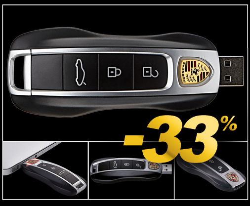 Clé USB Porsche Clé de contact Capacité de stockage 64 Go - Prise USB rétractable - Couleur Noir / chrome Porsche WAP0507150M001