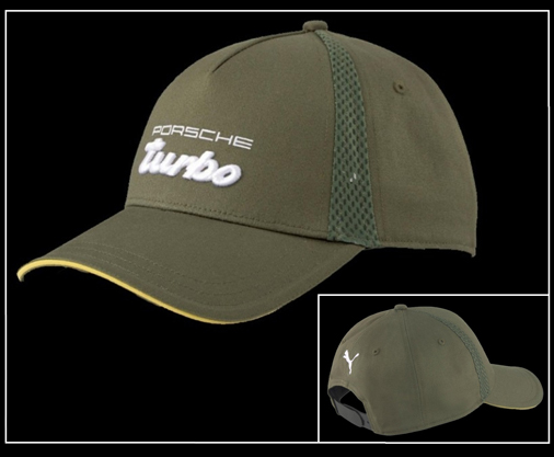 Casquette Porsche Turbo by Puma Couleur : Vert olive - Coquille 100% coton - Doublure avant 100% polyester Taille réglable - Puma 023722-02