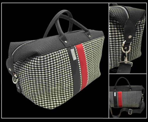 Sac de Voyage / Travel bag 911 Classic Pepita 2 grandes poches intérieures - 1 grande poche extérieure 2 poignées / 1 bandoulière - Matière Vinyl Basketweave / tissu pied de poule / cuir Fermeture éclair métallique - Ceintures de 911 GT3 RS en décoration 5 pieds métalliques - Dimensions 46 x 28 x 28 cm 419,95 € TTC / Incl. Taxes