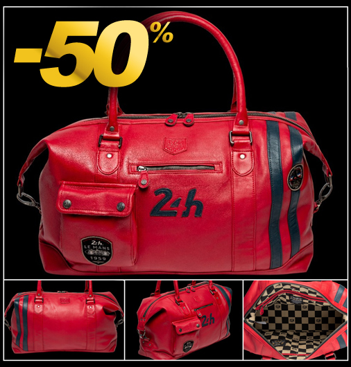 Grand Sac de Voyage en Cuir 24h Le Mans Matière 100% cuir de mouton - Doublure 100% Coton - Couleur Rouge Grand compartiment zippé - Dimensions 48 x 35 x 18 cm - Sangle amovible 3 poche intérieure - 1 poche sur l'avant et l'arrière - 2 anses Classic Legend Motors 27267