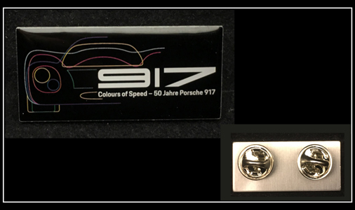 Pins 50 ans Porsche Porsche 917 - Colours of Speed Dimensions 35 x 14 mm - Aspect tôle émaillée - Couleur noir Origine Porsche Museum 9,95 € TTC / Incl. Taxes