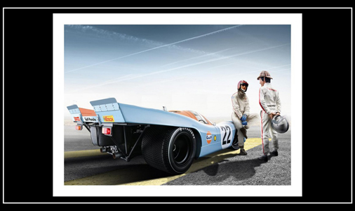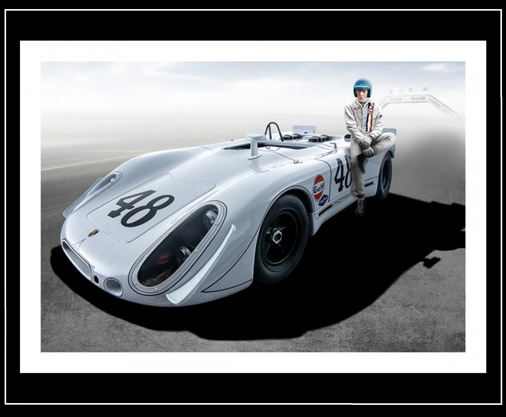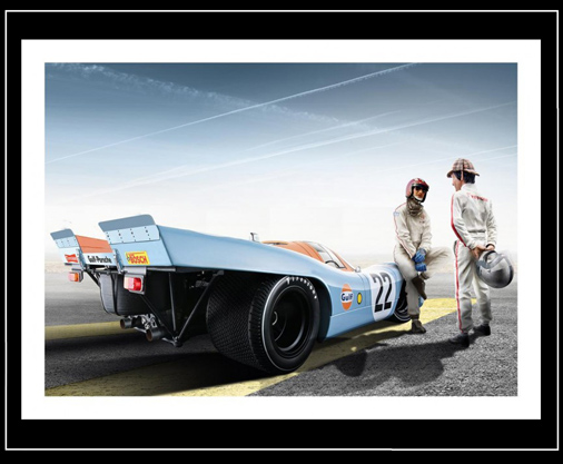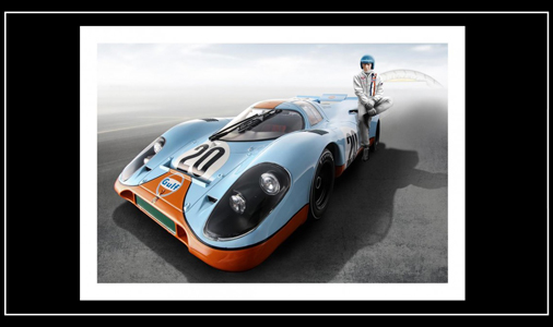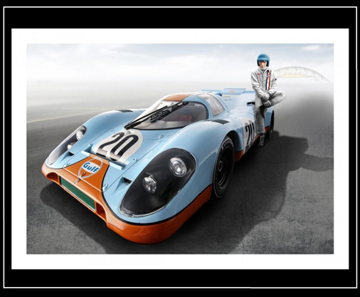 Poster Porsche 917 Gulf n°20 avec Steve McQueen Dimension du poster : 83.8 x 59 cm - Dimension de l'image : 77.8 x 53 cm Edition Limitée - 100 exemplaires numérotés 29,95 € TTC / Incl. Taxes