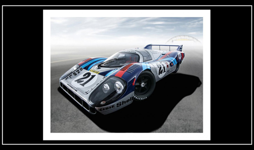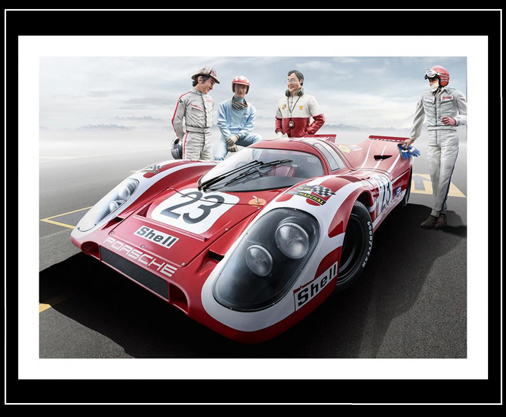 Poster Porsche 917 K n°23 - Vainqueur 24h du Mans 1970 Dimension du poster : 83.8 x 59 cm - Dimension de l'image : 77.8 x 53 cm Edition Limitée - 100 exemplaires numérotés 29,95 € TTC / Incl. Taxes