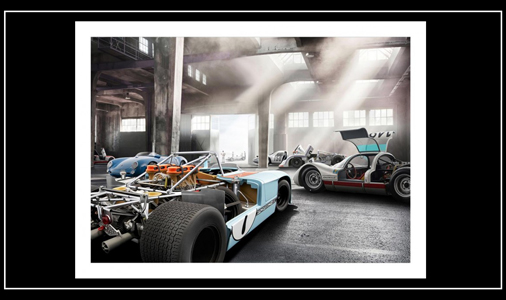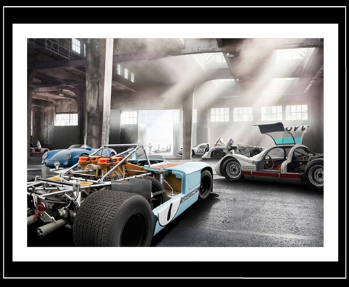 Poster Porsche 917 K Gulf avec Jo Siffert et Pedro Rodriguez Dimension du poster : 83.8 x 59 cm - Dimension de l'image : 77.8 x 53 cm Edition Limitée - 100 exemplaires numérotés 29,95 € TTC / Incl. Taxes