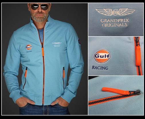 Veste zippée homme Gulf - Collectors Edition Porsche Gulf JWA Matière 95% coton 5% elasthanne - Qualité de coton premium Ecussons brodés manches / poitrine - 2 poches extérieures zippées Couleur bleu Gulf 99,90 € TTC / Incl. Taxes