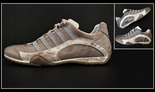 Chaussures pour homme Sport Sneaker Doublure et renforts cuir - Couleur bleige Livré avec 2 paires de lacets : bleu marine et rouge Matière 100% cuir / semelle caoutchouc 179 € TTC / Incl. Taxes