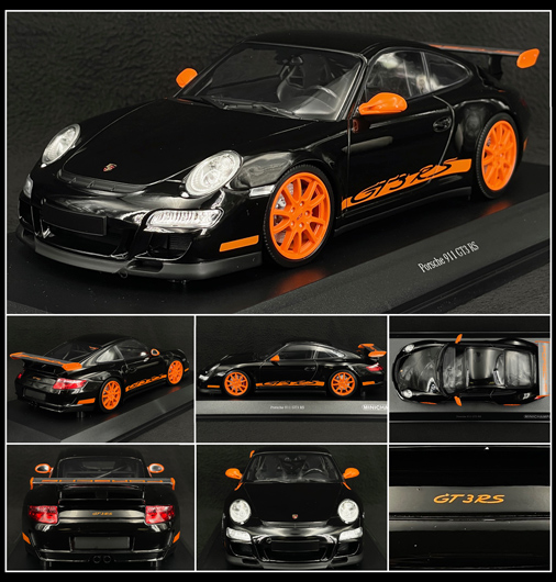 Porsche 911 GT3 RS 2007 Noir / Bandes Orange Fusion 1/18 - Minichamps 155062121