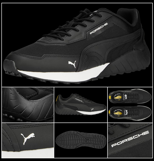 Chaussures Porsche 911 by Puma Matière Textile synthétique - Semelle rigide en Caoutchouc de haute qualité Couleur Noir - Renfort au niveau du talon - Lacets ronds Puma 307446-01