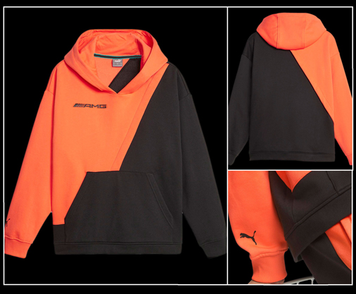 Hoodie homme Mercedes-AMG by Puma Matière 66% coton / 34% polyester - Couleur Orange / Noir Capuche - Poche ventrale - Bords élastiqués Puma 621188-01 109,95 € TTC / Incl. Taxes